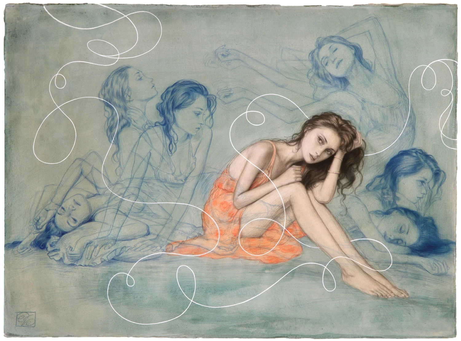 Dorian Vallejo's fine art drawings use realism to remark on the poetry of life, and how Dorian's views modern women. His portrayal of feminity is respectful showing them as complex, beautiful, playful, and contemplative.